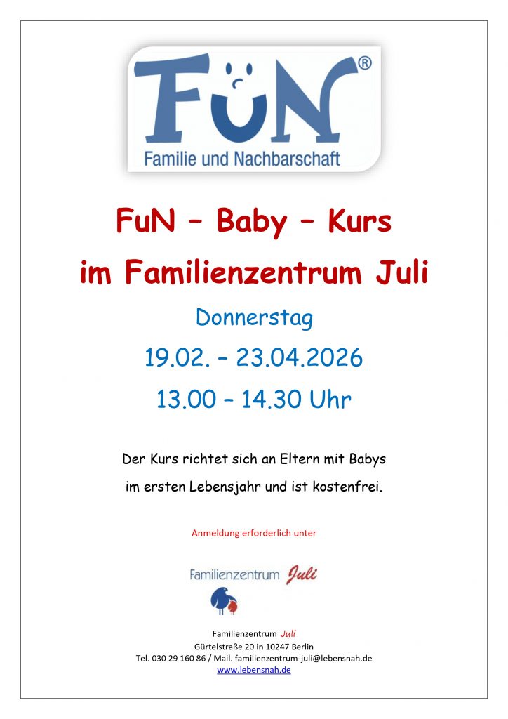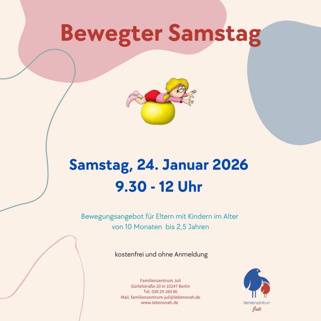 Telefon: 030 29 160 86 oder Mail: familienzentrum-juli@lebensnah.de